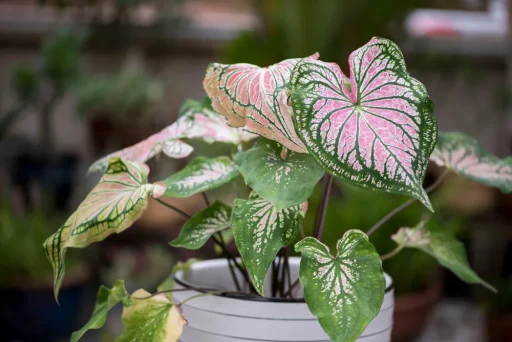 Caladium is a genus of vibrant tropical plants that are prized for their foliage rather than their flowers. Some of the most interesting varieties boast pink leaves.